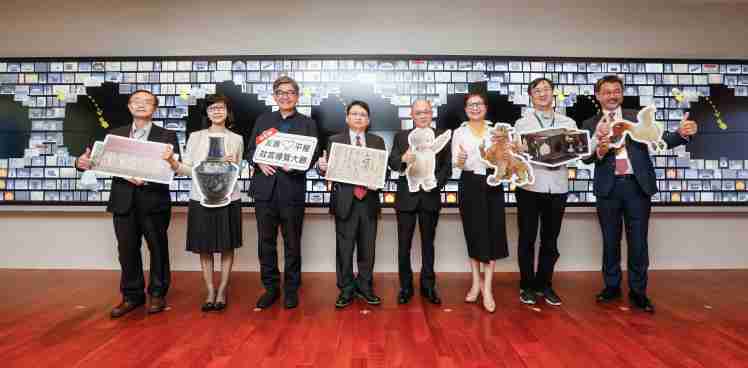 冰球突破携手创利空间为故宫建置的智慧文物互动导览墙及轮播墙,,,今日正式启用。。。(左四:冰球突破新事业暨投资管理总部副总经理杨本豫、、右四:故宫博物院院长吴密察、、、右三:太极影音董事长黄宝云)