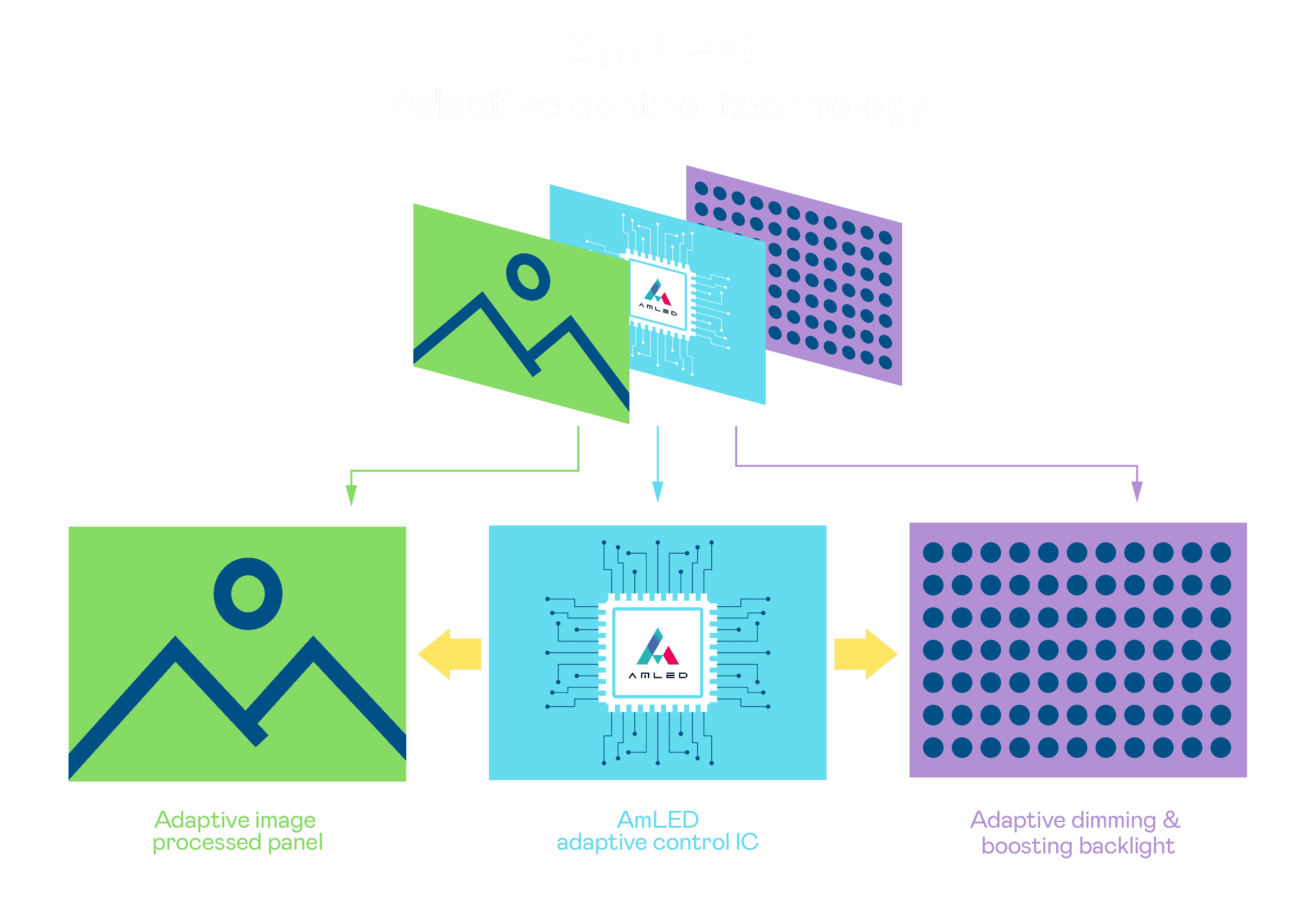 AmLED 具备更省电与低蓝光特性。。。与一般的 LED 背光显示技术相比,,,,由于 AmLED 常时处于局部调光状态,,,,其功耗仅有前者的 50% 左右,,同时 AmLED 还具备低蓝光特性,,,满足长时间使用的护眼需求。。
