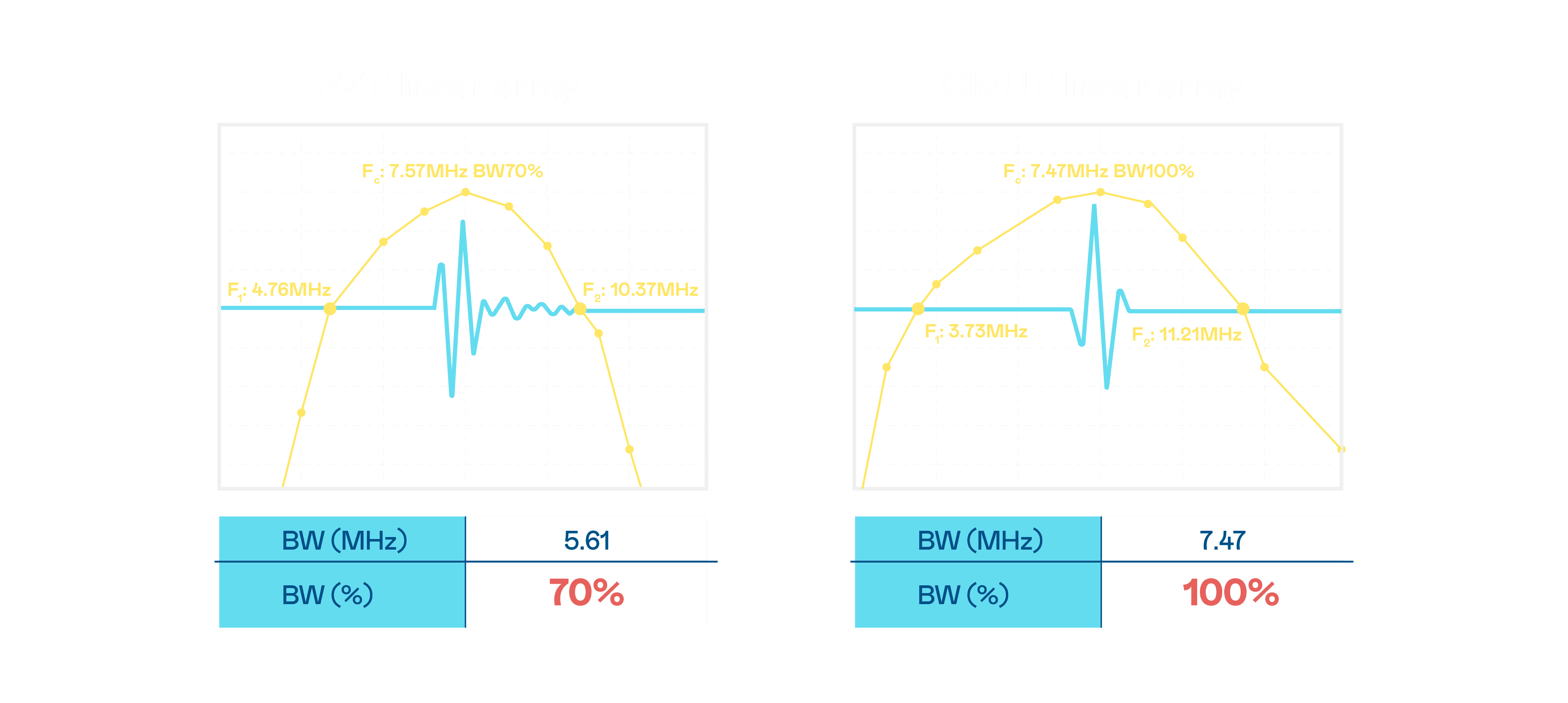 超音波影像的解析度高低,,,,首先取决于探头能发出的讯号频宽。。。冰球突破 CMUT 可提供高清晰的超音波讯号,,提供高频宽、、、高灵敏度、、、、影像纹理细节更高的超音波影像,,,,协助医护人员缩短影像判读时间及利用精准的医疗影像进行诊断。。。